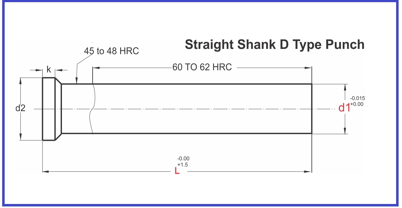 Order Type :- Punch (Type) Dia (d1) X Length (L)Example : - Punch (D) Dia 8 X 80